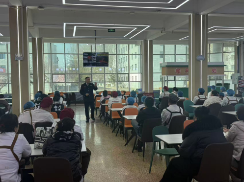 培训过程中,王教官结合近年来发生的典型火灾案例,特别是针对食堂操作间易发的油锅起火、电气火灾等特点,以案说法,深入浅出地讲解了火灾的危害性、初期火灾的扑救方法、火场逃生自救技巧以及日常防火巡查的注意事项。